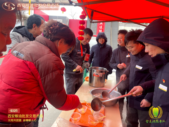 “天寒難鎖新春意,爐暖宜烹白玉丸。”乙巳年農(nóng)歷正月十五,西安糧油批發(fā)交易市場(chǎng)精心策劃并舉辦了“元宵共團(tuán)圓,金穗暖人心”主題活動(dòng)。此次活動(dòng)吸引了市場(chǎng)商戶、消費(fèi)者、裝卸工、貨車司機(jī)等500余人參與,大家共同度過(guò)了一個(gè)充滿傳統(tǒng)韻味與現(xiàn)代溫情的元宵佳節(jié)。