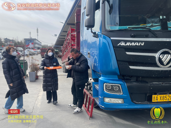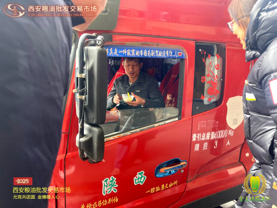 “金麥穗”服務(wù)隊(duì)還特別為外地大貨車司機(jī)送上了暖心湯圓。這些大貨車司機(jī)常年奔波在外,很難和家人一起過(guò)節(jié)。當(dāng)他們收到這份特別的節(jié)禮時(shí),眼中滿是感動(dòng)。一位司機(jī)師傅說(shuō):“雖然不能回家,但在這里感受到了家的溫暖,更感受到了千年古都西安人民的熱情,謝謝糧油市場(chǎng)對(duì)我們的關(guān)心。”