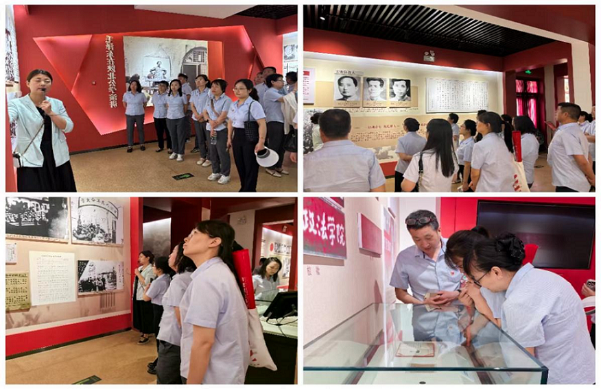 在講解員的引導下,大家依次走進各個展廳,認真聆聽著那段波瀾壯闊的歷史。展廳內(nèi)珍貴的歷史照片、詳實的文字資料和保存完好的實物展品,如“木板當課桌”,彰顯先輩奮斗精神,生動地再現(xiàn)了當年學校的教學場景和師生們的學習生活。大家不時駐足停留,仔細觀看每一件展品,深入了解每一個歷史細節(jié),仿佛穿越時空,感受到了先輩們?yōu)榱死硐牒托拍疃恍笂^斗的精神力量。這一過程,恰似一次深入的調(diào)查研究,讓黨員干部們從歷史中汲取智慧和力量,以更加務實的態(tài)度和作風投入到實際工作中。